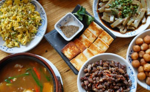 要荤素兼顾,粗细搭配,品种越杂越好。每天主副食品(不包括调味料)不应少于10样。