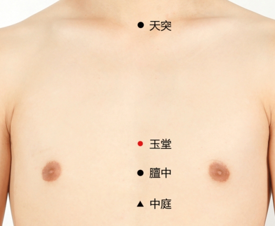 玉堂,属任脉。玉,金之属也,指穴内气血为肺金之性的天部之气。堂,厅堂也。该穴名意指本穴聚集的为任脉天部的凉性水气。本穴物质为膻中穴热胀上行的热燥之气,至本穴后此气散热冷缩而为凉性水气,且为聚集穴内,故名。下面深圳丝袜按摩会所告诉你玉堂穴的位置,功效和作用 。