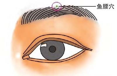 鱼腰穴:位于瞳孔直上,眉毛中间的位置。只需轻轻指压此穴20次,有镇静安神、疏风通络的功效。