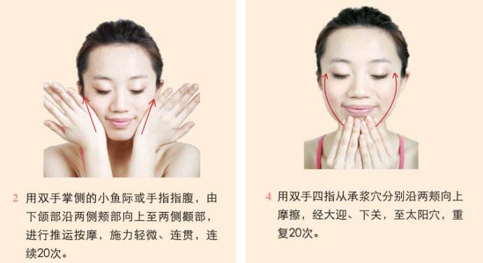 2、 眼皮的提拉,用双手的中指,在上眼皮处做上下往复的滑动,另外如果眼下皱纹比较深可以多按摩几个来回